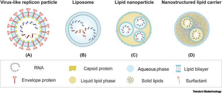 Dado que el saRNA es inestable, requiere de un vector para protegerlo y facilitar su entrada en la célula.